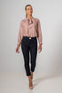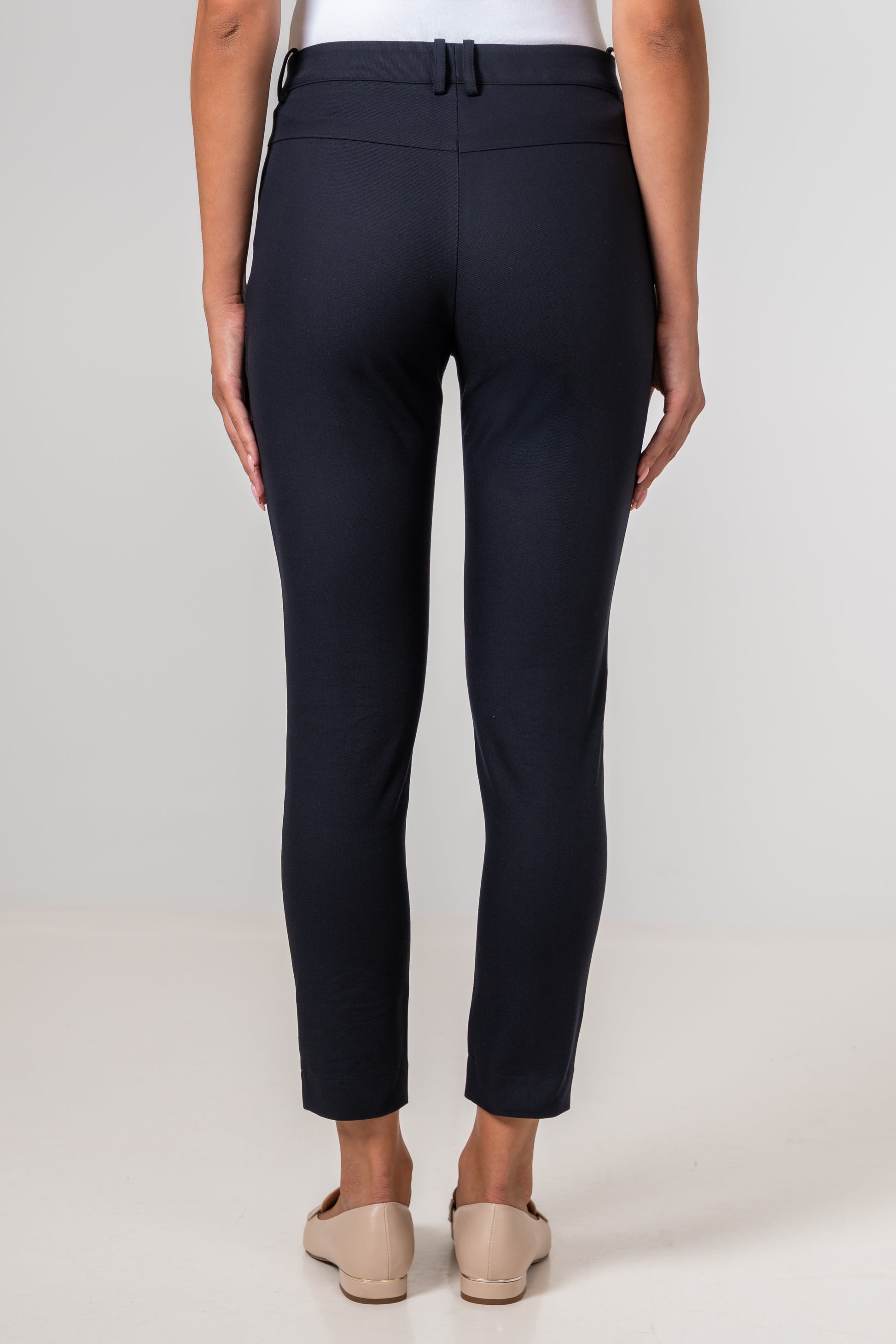 Cropped slim fit elastic trousers in cotton twill with corozo buttons and zip closure.